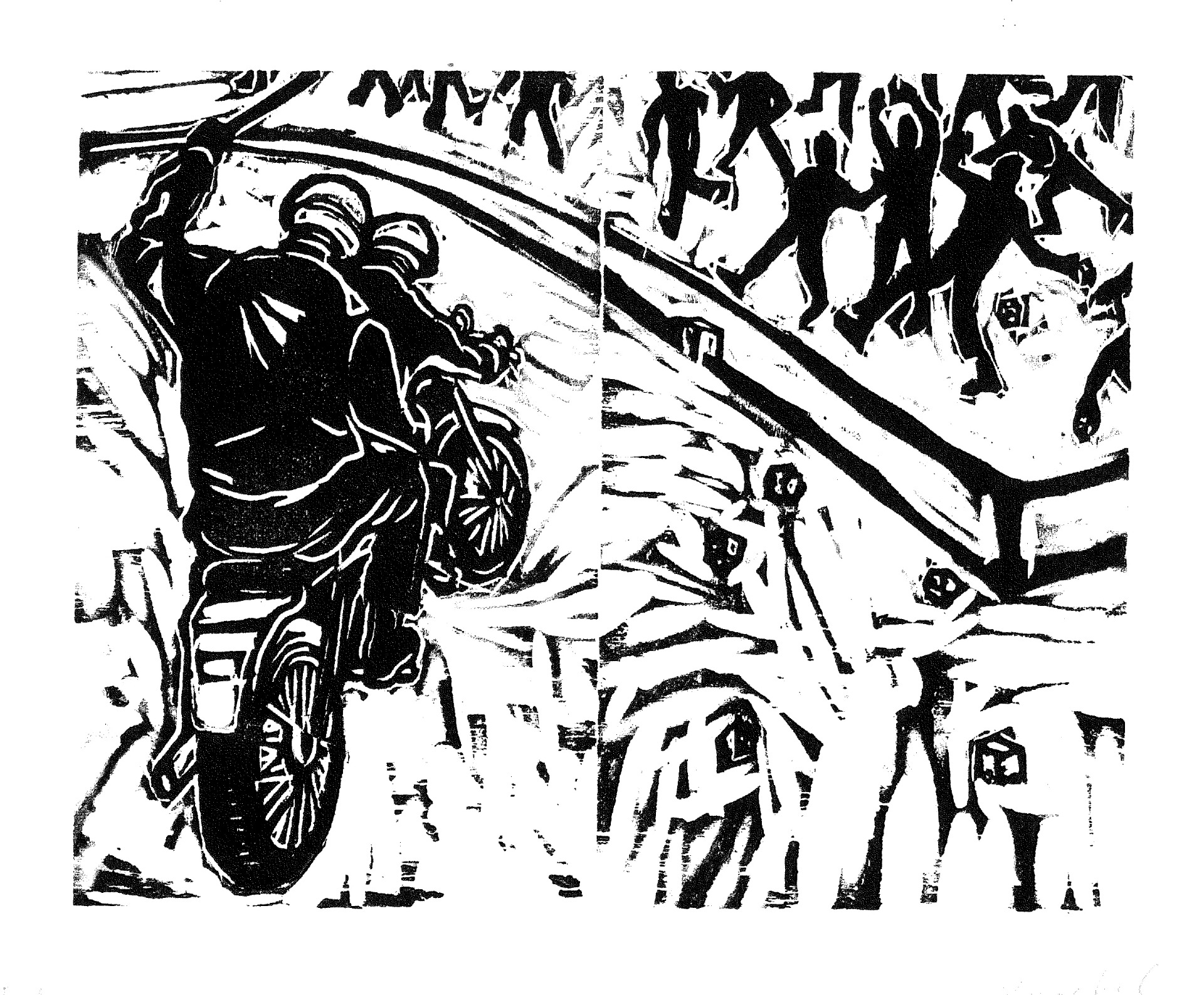 Non sono BRAV-i, gravure sur bois en deux plaques, 15x30 cm, 2023