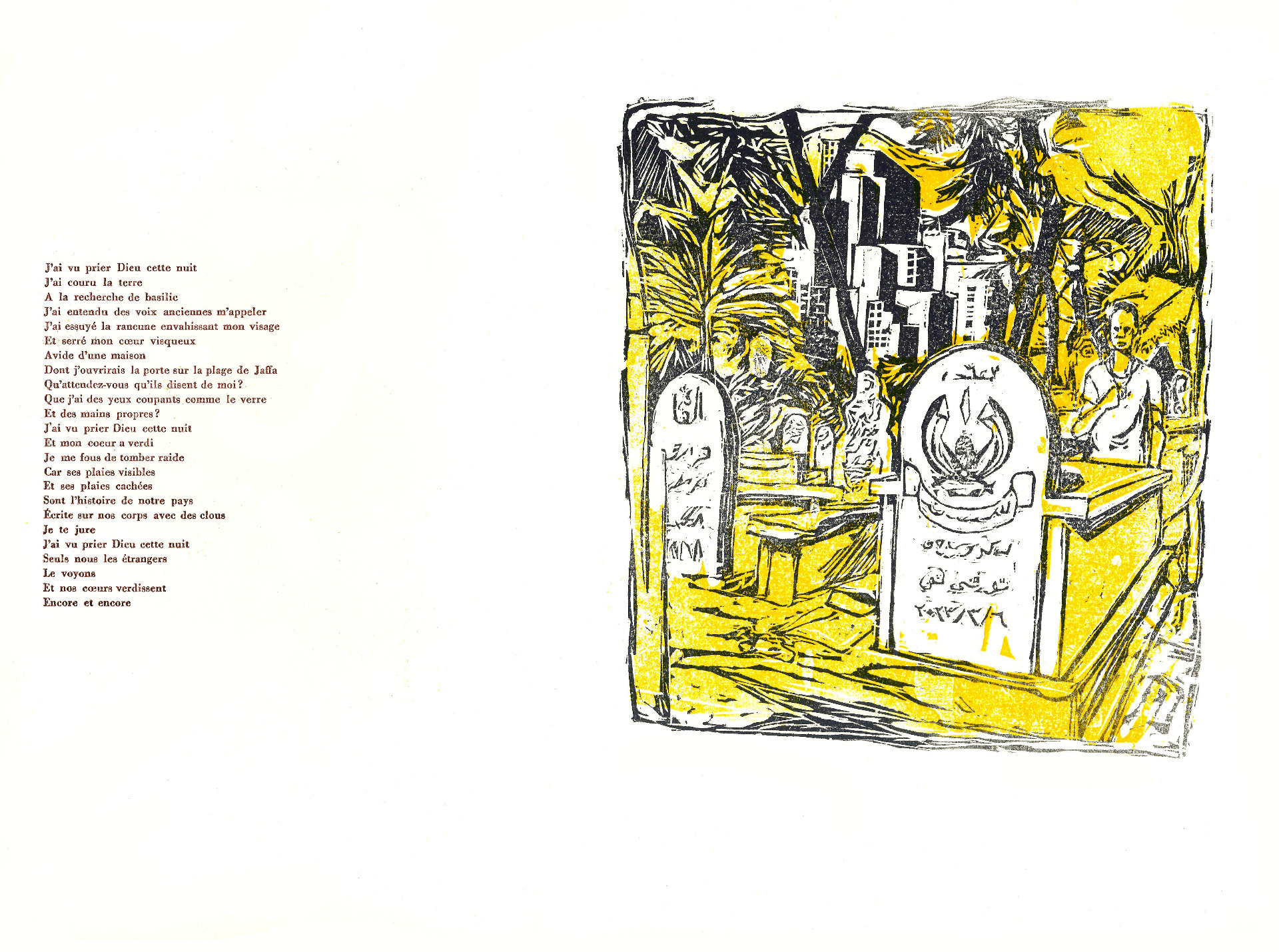Les fiançailles à Jenine, gravure sur bois, 16 x 23 cm, 2023