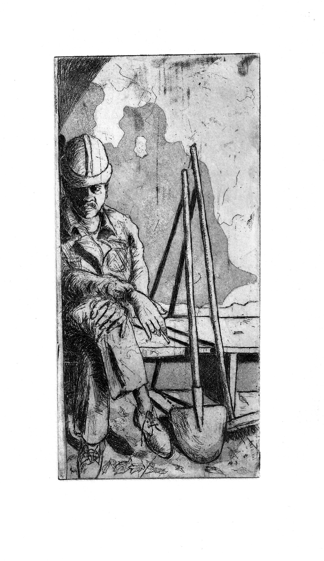 Travaux, eau-forte et aquatinte, 7.5 x 15 cm, 2023
